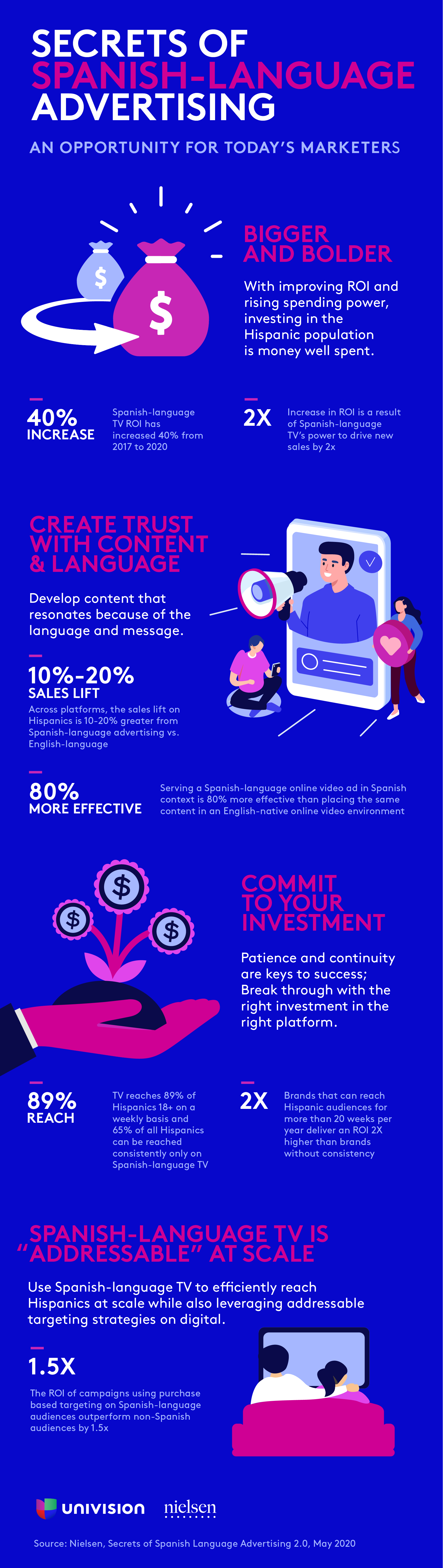 The latest research study by Univision and Nielsen, The Secrets of Spanish-Language Advertising 2.0, is the largest-ever meta-analysis of Marketing ROI for Spanish-language campaigns. The study clearly shows the increasing economic and strategic value Spanish-language media and advertising play in marketers’ plans. Download Nielsen’s whitepaper below to learn more.